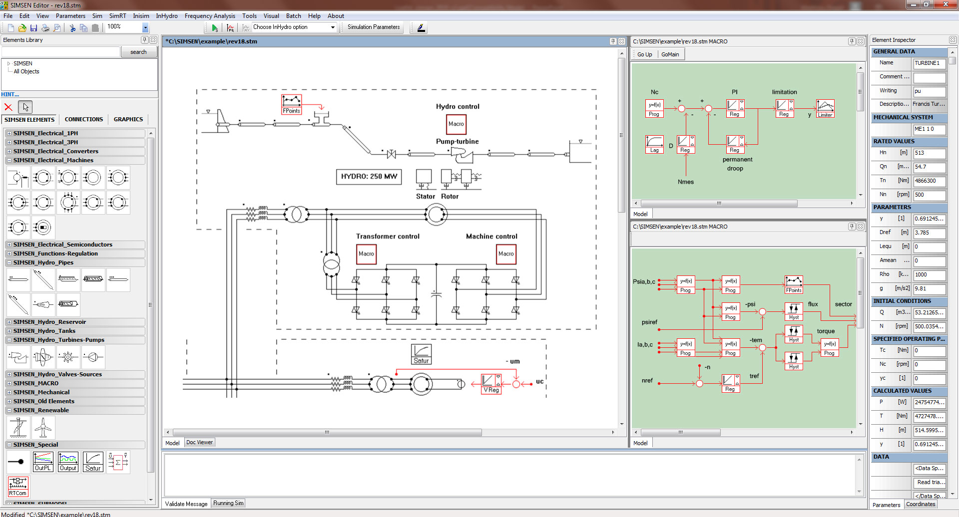 The software package enables modelling, simulation and analysis of the power networks dynamic behavior, speed drives and hydraulic systems with arbitrary topology. The strength of the software leads to the possibility of including into the simulation: